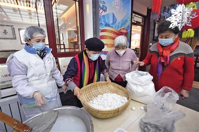 為解決市民扎堆排隊(duì),便宜坊集團(tuán)今年鋪設(shè)了約100個錦芳元宵銷售網(wǎng)點(diǎn),并首次進(jìn)駐物美超市。京味兒十足的護(hù)國寺小吃總店繼續(xù)堅(jiān)持“現(xiàn)搖現(xiàn)售”,不但推出了巧克力、黑芝麻等傳統(tǒng)口味元宵,還上新了流心榴蓮餡,增加電話預(yù)訂、線上購買業(yè)務(wù)。老字號又一順專門用火龍果調(diào)色,制作出巧克力餡、玫瑰紅的限量版元宵。峨嵋酒家推出了用蔬菜汁、水果汁調(diào)出的“五彩”湯圓。華天集團(tuán)微信公眾號推出“猜燈謎”互動小游戲,猜出謎底可獲得不同面值會員商城優(yōu)惠券。