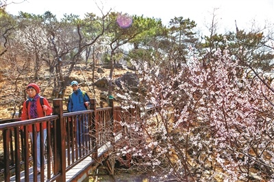 張宇介紹,蟒山景區(qū)森林步道有五條分支,連接成網。既有林間小道,也有木棧道、石臺階棧道等。游客可以沿著山脊,欣賞十三陵水庫和明十三陵風景,同時還可以穿越林海,感受大自然的獨特魅力。她說,“蟒山景區(qū)森林步道全長約14公里,有的路段比較平坦,適合親子家庭踏春賞景;有的路段山勢陡峭,適合戶外運動愛好者去攀登探索。此外,公園將其中一條分支開辟為車行道,游客可以把車開到半山腰,路途比較平坦,為游客登山提供了便利?!睋本┦袌@林綠化局國有林場和種苗管理處處長曾小莉介紹,今年本市將在5家國有林場推出總長度約100公里的森林步道,吸引更多市民游客體驗森林旅游,感受生態(tài)之美。