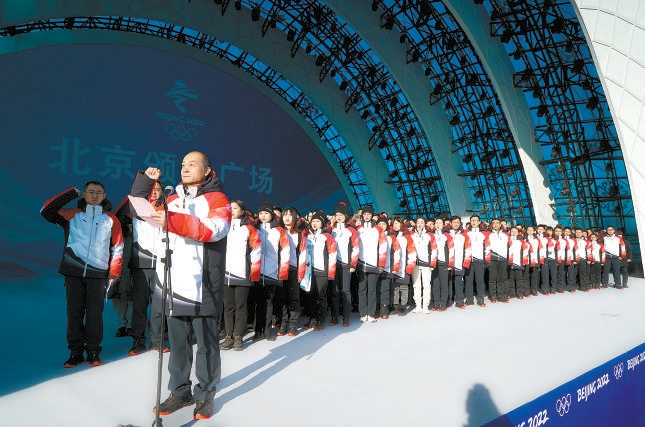 2021年元旦期間,北京頒獎廣場剛剛落成,團隊在舞臺上舉行誓師大會。