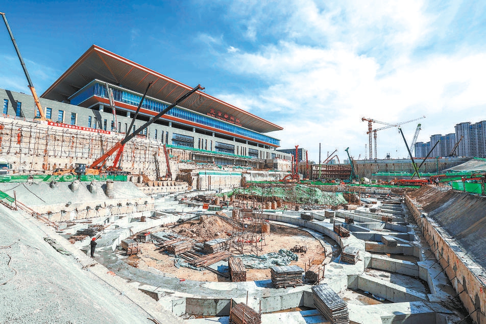 北京朝陽站(原星火站)是《北京城市總體規(guī)劃(2016年-2035年)》確定的本市鐵路對外客運(yùn)樞紐之一。北京朝陽站交通樞紐工程總建筑面積13.3萬平方米,包括北側(cè)公交立體停車樓和南側(cè)樞紐換乘大廳。同時(shí),地鐵星火站作為地鐵3號線、R4線的換乘站,位于交通樞紐地下,基坑最深處位于地下40米,相當(dāng)于13層住宅樓的高度。