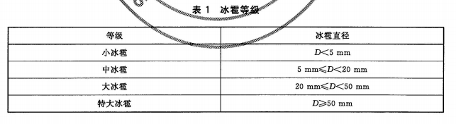 《冰雹等級GB/T 27957-2011》