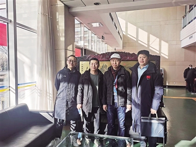 1月22日,劉冠林(左一)和冬殘奧會(huì)開(kāi)閉幕式工作組部分工作人員合影。受訪者供圖