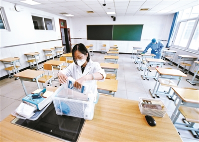 今年高考期間,作為常規(guī)考點(diǎn)之一的東直門(mén)中學(xué)考點(diǎn)將設(shè)置13個(gè)常規(guī)考場(chǎng)、3個(gè)備用考場(chǎng)。熊勁介紹,當(dāng)遇到發(fā)熱考生時(shí),考點(diǎn)考務(wù)人員會(huì)立即將發(fā)熱考生通過(guò)專(zhuān)門(mén)進(jìn)口帶進(jìn)考點(diǎn)內(nèi)的隔離室,進(jìn)行健康觀察。為了防止交叉,考點(diǎn)為發(fā)熱考生設(shè)置專(zhuān)門(mén)進(jìn)入考點(diǎn)的通道。