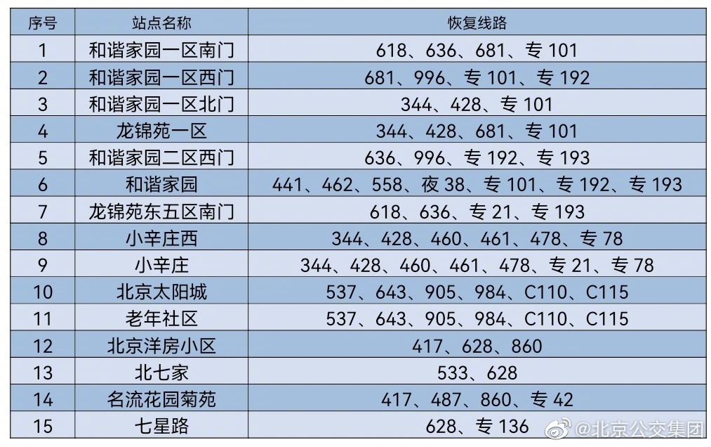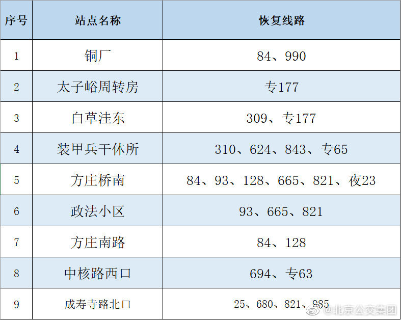 央廣網(wǎng)北京6月16日消息 據(jù)北京公交集團(tuán)官博消息,按照防疫工作要求,自2022年6月16日首班車起,對前期途經(jīng)昌平區(qū)封管控區(qū)域周邊采取甩站措施的35條線路以及前期途經(jīng)豐臺區(qū)封管控區(qū)域周邊采取甩站措施的18條線路,恢復(fù)正常運營,恢復(fù)信息詳見下表。