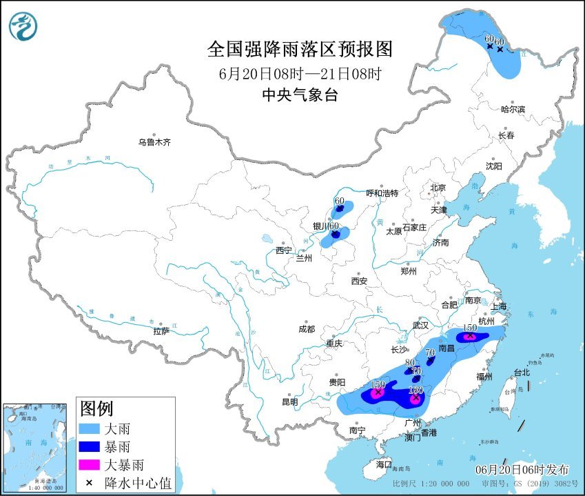 此外,中央氣象臺(tái)6月20日6時(shí)繼續(xù)發(fā)布強(qiáng)對(duì)流天氣藍(lán)色預(yù)警。預(yù)計(jì)6月20日8時(shí)至21日8時(shí),內(nèi)蒙古中部和東部、黑龍江中西部、吉林中西部、遼寧西部、寧夏北部、河北北部、湖南南部、江西東北部和西南部、廣西東北部等地的部分地區(qū)將有8-10級(jí)、局地11級(jí)以上雷暴大風(fēng)或冰雹天氣;內(nèi)蒙古中部和東北部、黑龍江、吉林西部、寧夏、甘肅南部、安徽南部、上海、湖北南部、湖南、江西、浙江、福建西北部、貴州東南部和西北部、廣西中北部、廣東中北部、云南西部等地的部分地區(qū)將有短時(shí)強(qiáng)降水天氣,小時(shí)雨量30-60毫米,局地可達(dá)70毫米以上。