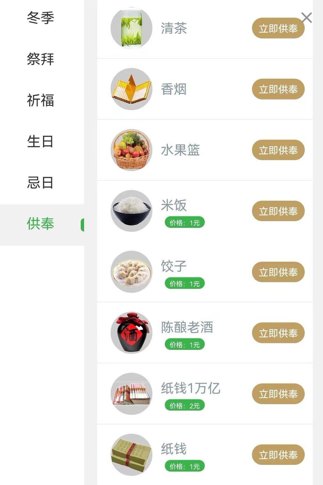 記者發(fā)現(xiàn),用戶免費(fèi)創(chuàng)建“網(wǎng)上紀(jì)念館”后,可以在紀(jì)念館進(jìn)行“祭拜、祈福、獻(xiàn)花、供奉”等虛擬活動(dòng)。而在推出的這些虛擬服務(wù)中,有些是免費(fèi)的,有些則要收取費(fèi)用。比如,在某平臺(tái)送出一個(gè)“生日快樂”蛋糕,需要微信支付2元,送一疊“忌日紙錢”需要支付1元,一份“米飯”1元。