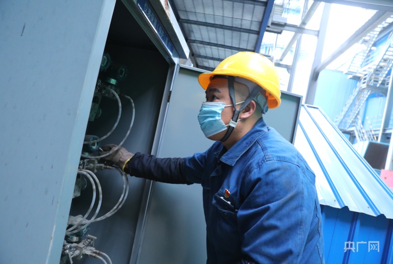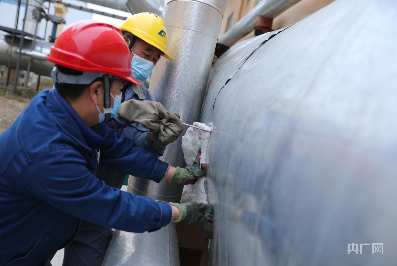 工作人員冒著嚴(yán)寒對設(shè)備進(jìn)行巡查(央廣網(wǎng)發(fā) 楊英攝)