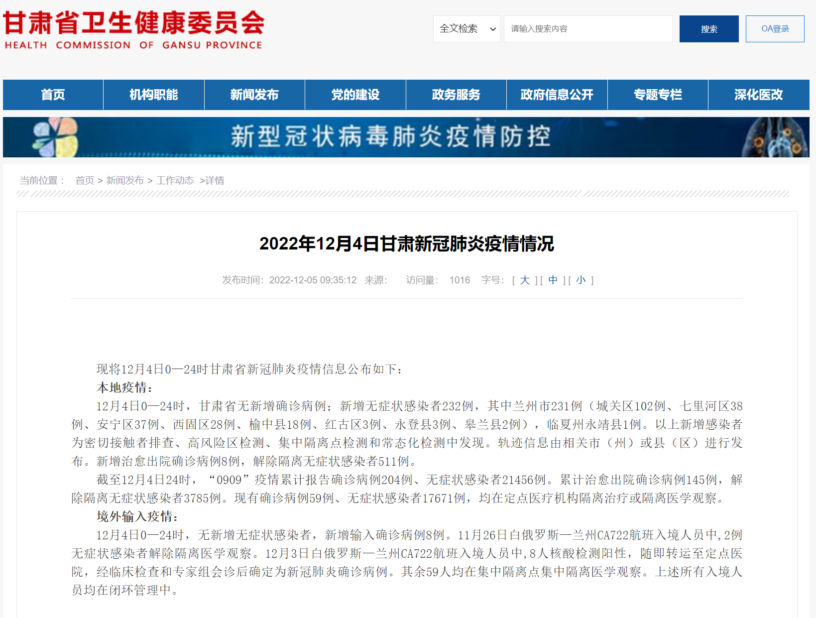 甘肅省衛(wèi)健委官網(wǎng)截圖