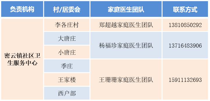 密云區(qū)家庭醫(yī)生團(tuán)隊(duì)信息