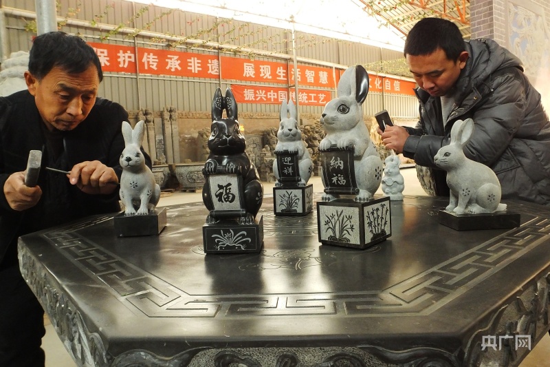 首批面世的兔年生肖系列石雕,耗時(shí)6個(gè)多月,有大小15種造型,采用傳統(tǒng)技藝與現(xiàn)代工藝相結(jié)合的雕刻技藝,其造型活靈活現(xiàn)、憨態(tài)可掬。