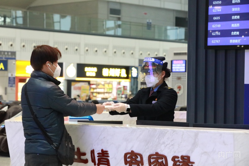 贛州西站服務(wù)臺為旅客提供口罩(央廣網(wǎng)發(fā) 鄒陽 攝)