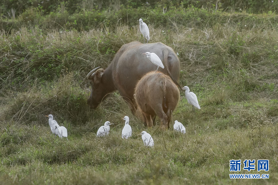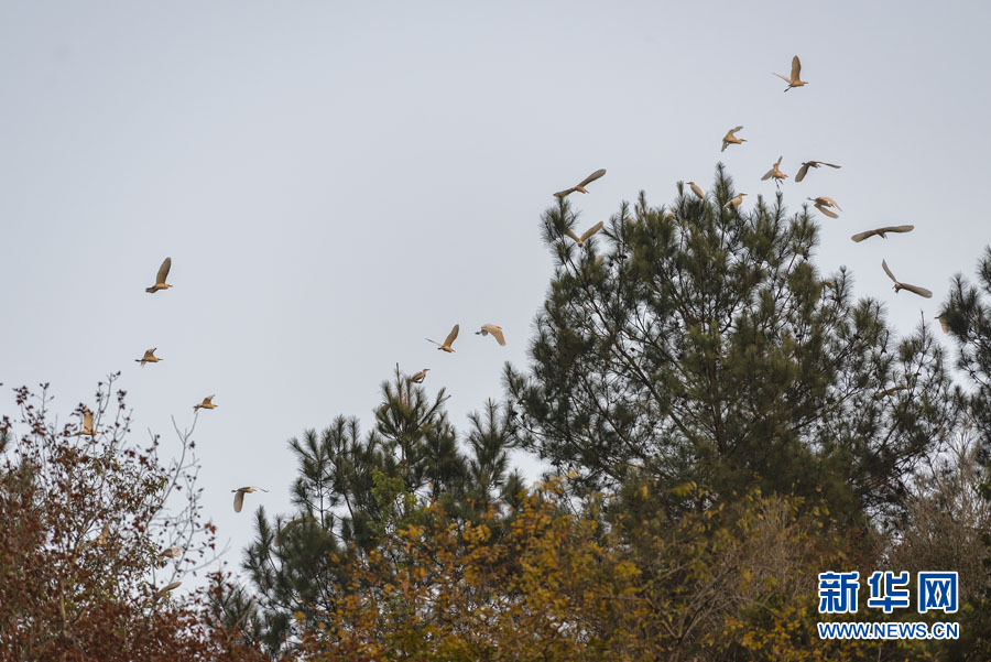 日前,在廣西百色市德??h城關(guān)鎮(zhèn)西讀村那西屯的田野上,成群白鷺或在覓食嬉戲、或在空中飛舞、或在樹梢停歇,與青山、綠水、紅楓構(gòu)成一幅美麗的自然生態(tài)畫卷。