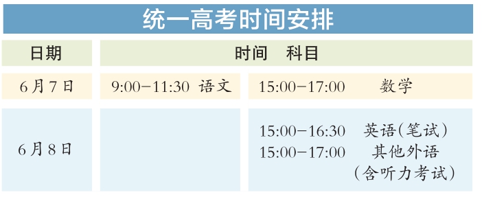 今年統(tǒng)一高考考試科目為語文、數(shù)學、外語3門,滿分均為150分。其中,英語聽說考試滿分50分,其他外語(非英語)聽力考試滿分30分,兩次聽說(聽力)考試的最高成績與其他部分試題成績一同組成外語科目成績計入高考總分。學考等級考科目為思想政治、歷史、地理、物理、化學、生物6門,由考生自主選擇3門參加考試,每科目滿分100分。參加本科招生錄取的考生總成績由3門統(tǒng)一高考成績和考生選考的3門學考等級考成績構成,總成績滿分值為750分。
