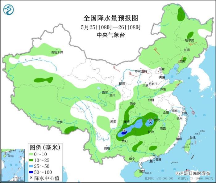 全國降水量預(yù)報圖(5月23日08時-24日08時)