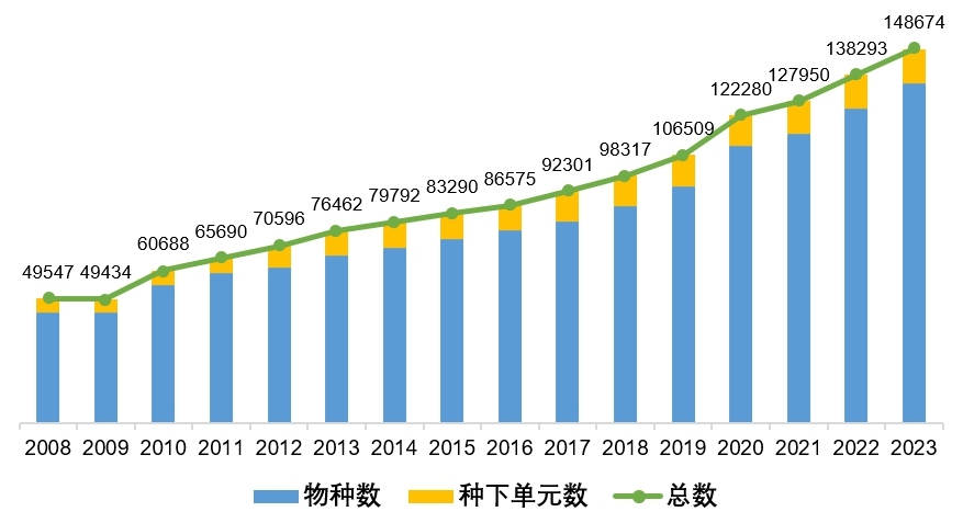 《中國生物物種名錄》歷年數(shù)據(jù)量變化圖 圖片來源:中科院生物多樣性委員會(huì)微信公眾號