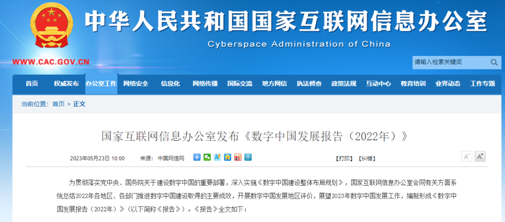 國家互聯(lián)網(wǎng)信息辦公室會同有關(guān)方面系統(tǒng)總結(jié)2022年各地區(qū)、各部門推進(jìn)數(shù)字中國建設(shè)取得的主要成效,開展數(shù)字中國發(fā)展地區(qū)評價,展望2023年數(shù)字中國發(fā)展工作,編制形成《數(shù)字中國發(fā)展報告(2022年)》。