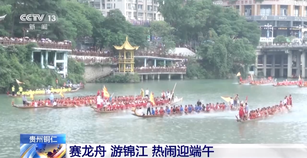 在貴州省銅仁市,中國傳統(tǒng)龍舟大賽大型游江活動熱烈上演。一艘艘威武的龍舟在水手們的劃動下爭先競渡,歡呼聲、吶喊聲、鑼鼓聲匯聚錦江,氣氛十分熱烈。市民們聚到錦江兩岸,感受賽龍舟的獨特魅力。