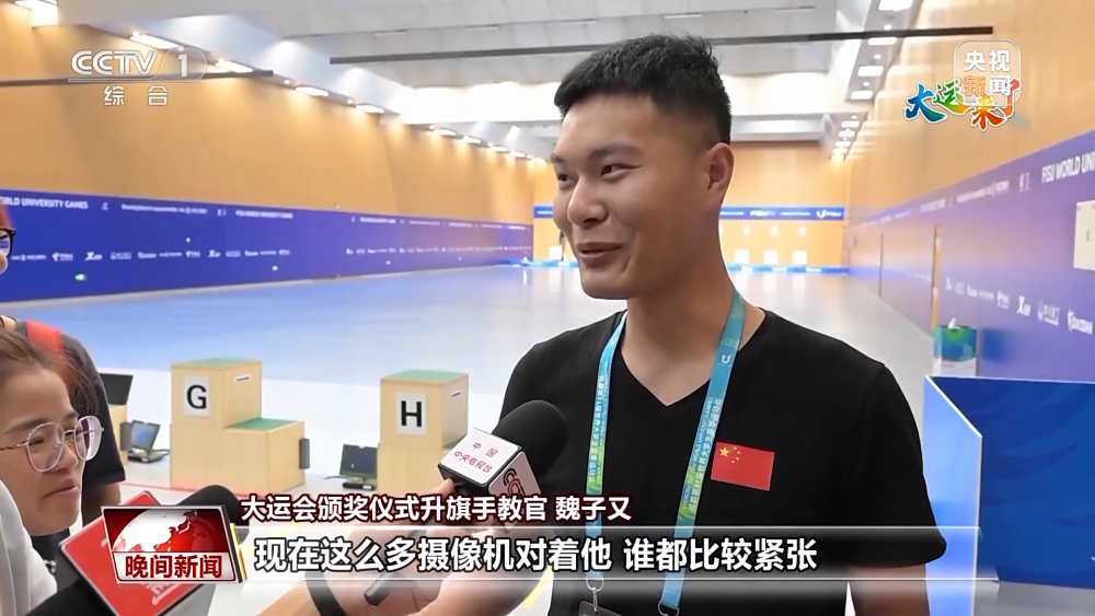 大運(yùn)會(huì)頒獎(jiǎng)儀式升旗手教官 魏子又:她們也都還是十幾歲的孩子,這么多攝像機(jī)對(duì)著她們,都比較緊張,還是需要經(jīng)常面對(duì)鏡頭來成長(zhǎng)自己。