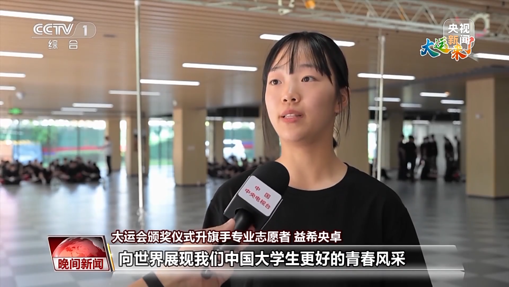 大運(yùn)會(huì)頒獎(jiǎng)儀式升旗手專業(yè)志愿者 益希央卓:要心里有信念才能把這件事做好。向世界展現(xiàn)我們中國(guó)大學(xué)生更好的青春風(fēng)采。