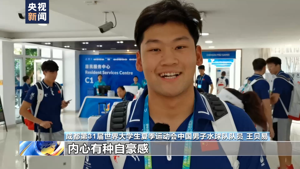 成都第31屆世界大學(xué)生夏季運(yùn)動會中國男子水球隊隊員 王貝易:外面已經(jīng)看到我們中國隊的國旗了,內(nèi)心有種自豪感。