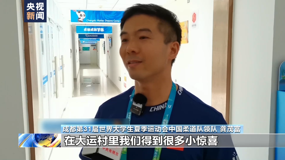 成都第31屆世界大學(xué)生夏季運(yùn)動會中國柔道隊領(lǐng)隊 龔茂富:在大運(yùn)村里,我們得到很多小驚喜,我們的隊員都十分開心。