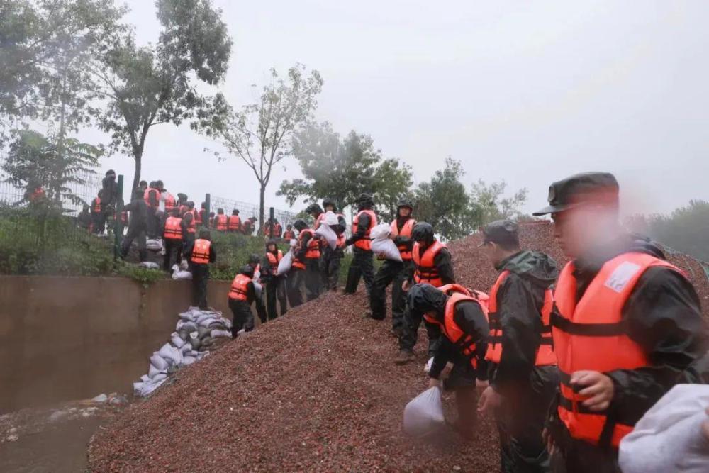 官兵們星夜出動,于凌晨2時(shí)許抵近房山琉璃河鎮(zhèn)。大雨傾盆,武警官兵揮動鐵鏟,借助推土機(jī)、裝載機(jī)等裝備,在河床低洼地域迅速壘筑堤壩,防止河水暴漲,出現(xiàn)漫灌危險(xiǎn)。