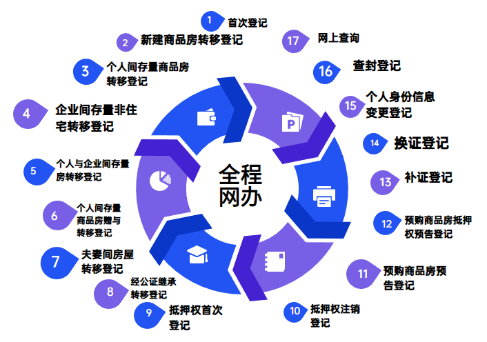(17項(xiàng)常見(jiàn)登記業(yè)務(wù)的“全程網(wǎng)辦”示意圖,圖源:北京市規(guī)劃和自然資源委員會(huì)微信公眾號(hào),央廣網(wǎng)發(fā))