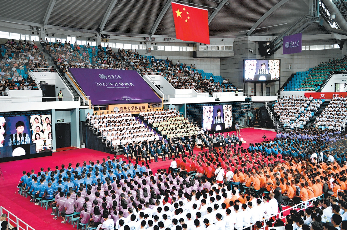 24日,清華大學(xué)3800余名2023級本科新生迎來開學(xué)典禮。校長王希勤帶來開學(xué)第一課,他以老清華人求真務(wù)實、無私奉獻(xiàn)的故事為例,講授“行勝于言”的原則,勉勵新生勤而行之、日有所進(jìn)。