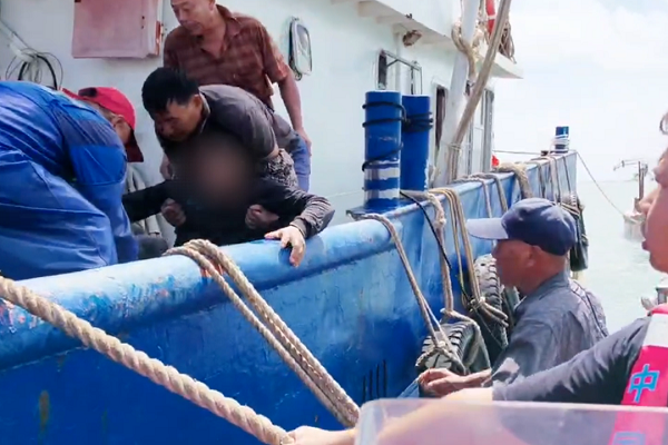 受傷漁民上岸救治(央廣網(wǎng)發(fā) 通訊員供圖)