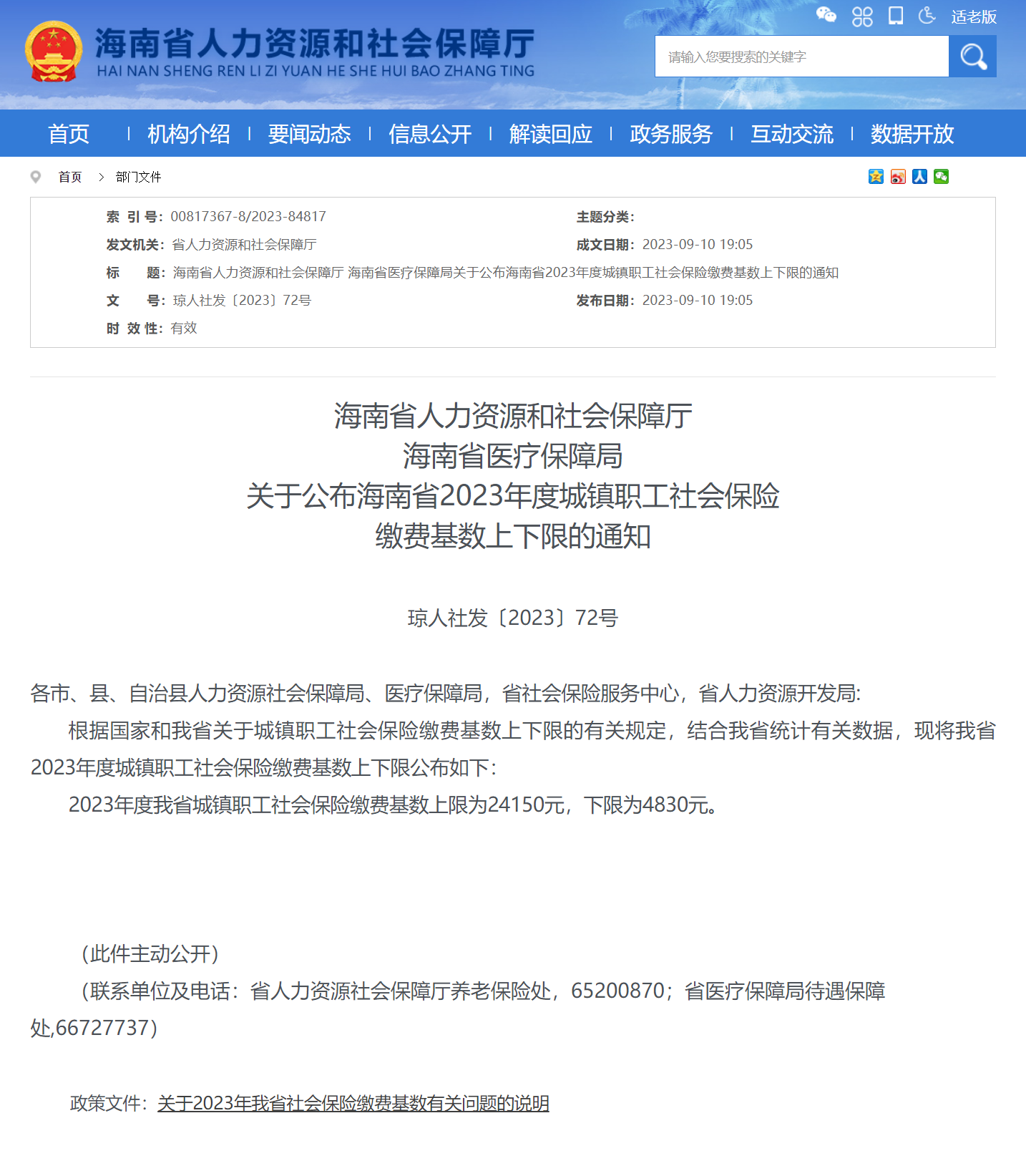 2023年海南社保繳費基數(shù)調(diào)整 上限24150元下限4830元