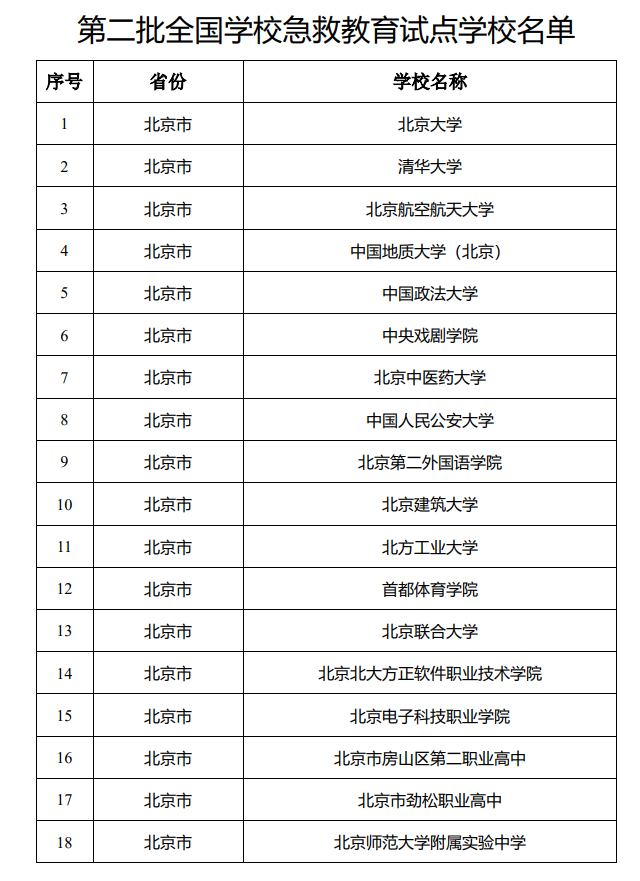 北京大學(xué)等1000所學(xué)校被確定為第二批全國學(xué)校急救教育試點(diǎn)學(xué)校
