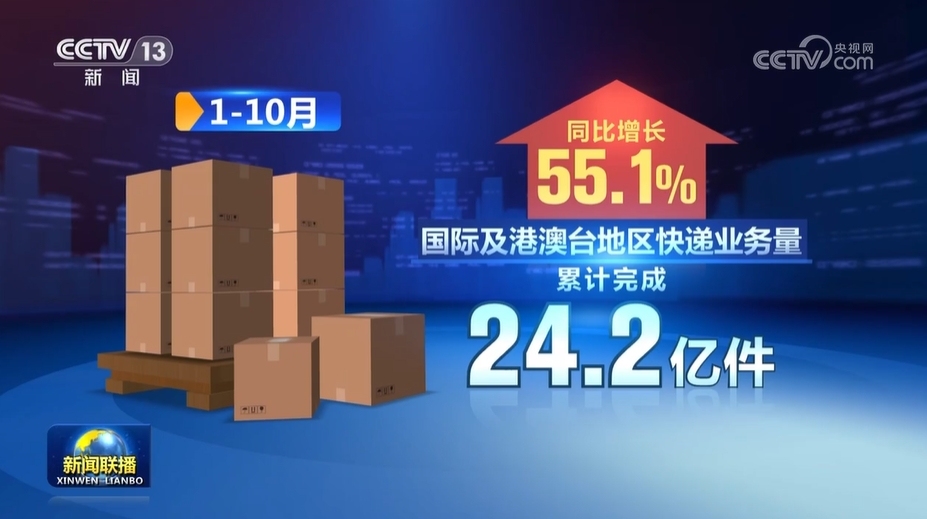 隨著我國(guó)主要快遞企業(yè)布局國(guó)際寄遞網(wǎng)絡(luò),加快海外倉(cāng)建設(shè),新開通多條國(guó)際全貨機(jī)航線,通過為消費(fèi)者提供全鏈路跨境電商寄遞服務(wù),郵政快遞業(yè)在促進(jìn)產(chǎn)品跨境流動(dòng)中的作用明顯增強(qiáng),國(guó)際供應(yīng)鏈產(chǎn)業(yè)鏈保障水平進(jìn)一步提升。1—10月,國(guó)際及港澳臺(tái)地區(qū)快遞業(yè)務(wù)量累計(jì)完成24.2億件,同比增長(zhǎng)55.1%。