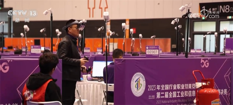 總臺央視記者 張叢婧:我身旁這一個個小隔間就是選手的比賽工位,可以看到有不同顏色,代表著四個賽項,分別是工業(yè)互聯(lián)網(wǎng)安全、汽車芯片開發(fā)應(yīng)用、工業(yè)大數(shù)據(jù)算法、5G+虛擬現(xiàn)實開發(fā)應(yīng)用。除了工業(yè)大數(shù)據(jù)算法這一項,其他三個賽項都是今年新設(shè)立的。