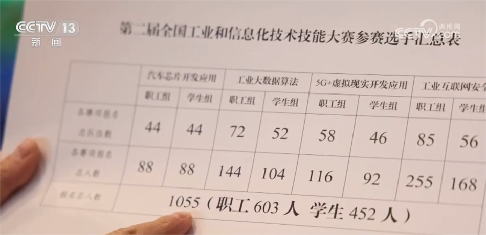 總臺央視記者 張叢婧:這是決賽的參賽表,可以看到,這次的選手有1000多名。我發(fā)現(xiàn),選手里將近一半都是學(xué)生,他們大部分來自職業(yè)院校。主辦方告訴我,和去年相比,今年學(xué)生的比例提高了30%多。
