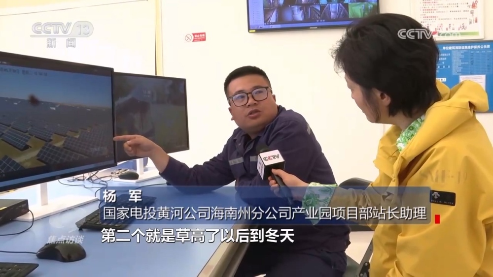 國(guó)家電投黃河公司海南州分公司產(chǎn)業(yè)園項(xiàng)目部站長(zhǎng)助理?xiàng)钴姡骸肮夥逑旅孢@些羊,就是我們請(qǐng)過(guò)來(lái)幫忙除草的。因?yàn)槊磕暌坏较奶?,園區(qū)電池組件下面草就特別高,長(zhǎng)高了以后會(huì)遮擋電池組件,一個(gè)是影響發(fā)電效率,再一個(gè)秋冬季有火災(zāi)隱患?!?/p>