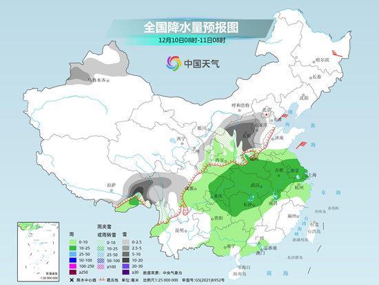 “預(yù)計(jì)12月10日開始,隨著暖濕氣流加強(qiáng)北上,與北方南下的冷空氣相結(jié)合,中東部地區(qū)將迎來(lái)大范圍雨雪天氣。”目前來(lái)看,10日至11日,華北、東北部分地區(qū)有小到中雪、局地大雪,黃淮北部、陜西北部有雨轉(zhuǎn)雨夾雪或雪,黃淮南部、江漢、江淮、江南、華南北部等地有小到中雨,局地大雨。