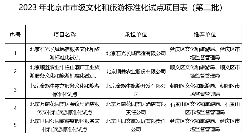 北京市確定5項市級文化和旅游標(biāo)準(zhǔn)化試點項目