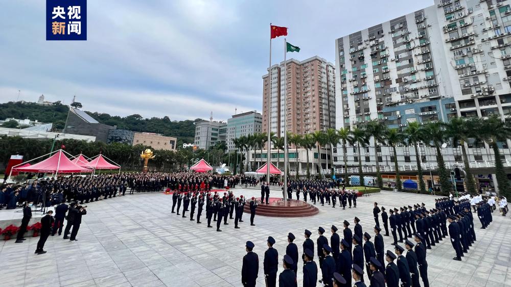澳門特區(qū)政府20日在金蓮花廣場(chǎng)舉行升旗儀式,慶祝澳門回歸祖國(guó)24周年。