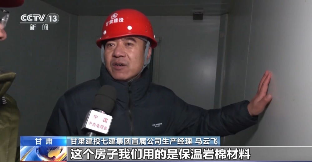 甘肅建投七建集團(tuán)直屬公司生產(chǎn)經(jīng)理 馬云飛:這個(gè)房子的面積是18個(gè)平方,3米乘6米,能住4到6個(gè)人。 房子我們用的是保溫巖棉材料,屬于A級(jí)防火等級(jí)的材料。 取暖問(wèn)題考慮用電暖氣。 我們下一步考慮也要把水引進(jìn)來(lái),包括電。老百姓只要進(jìn)來(lái)打掃打掃房間,完全可以達(dá)到入住條件。