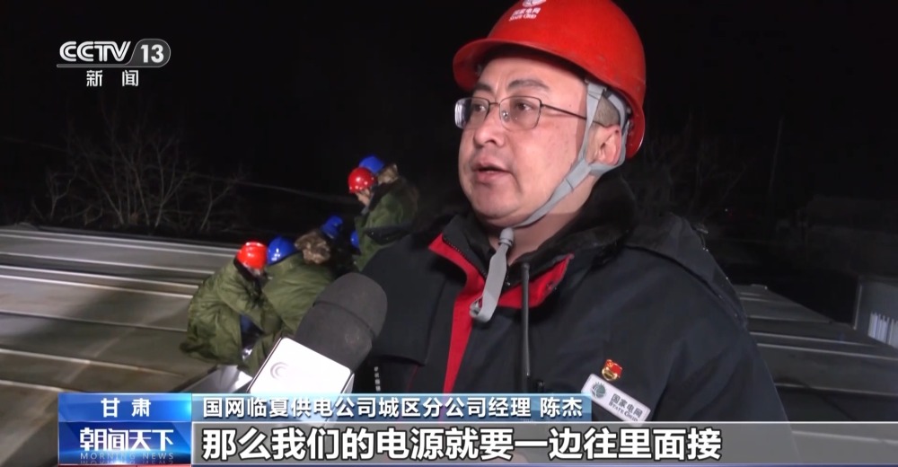 國(guó)網(wǎng)臨夏供電公司城區(qū)分公司經(jīng)理 陳杰:按照常規(guī)來(lái)說(shuō),整個(gè)的板房區(qū)搭建完成以后,我們才會(huì)開(kāi)始按部就班進(jìn)行電力電源的接入工作。但是現(xiàn)在時(shí)間非常緊張,我們已經(jīng)沒(méi)有時(shí)間按照常規(guī)的手段去施工,所以現(xiàn)在他們的板房是一邊搭一邊建,我們的電源就要一邊往里面接,現(xiàn)在也是爭(zhēng)取整個(gè)板房區(qū)建成的同時(shí),我們供電的保障工作也能同步完成。