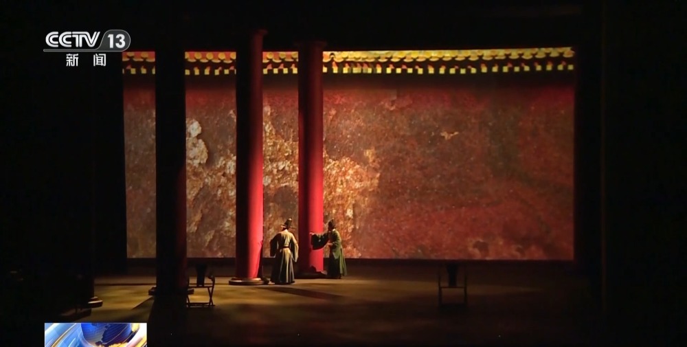 舞臺上,靈感來自故宮大殿的八根紅色立柱構(gòu)建起整個表演空間,配合多媒體的數(shù)字影像,營造出極具東方審美意境的戲劇空間。兼具厚重與靈動,讓歷史劇更具當(dāng)代審美。
