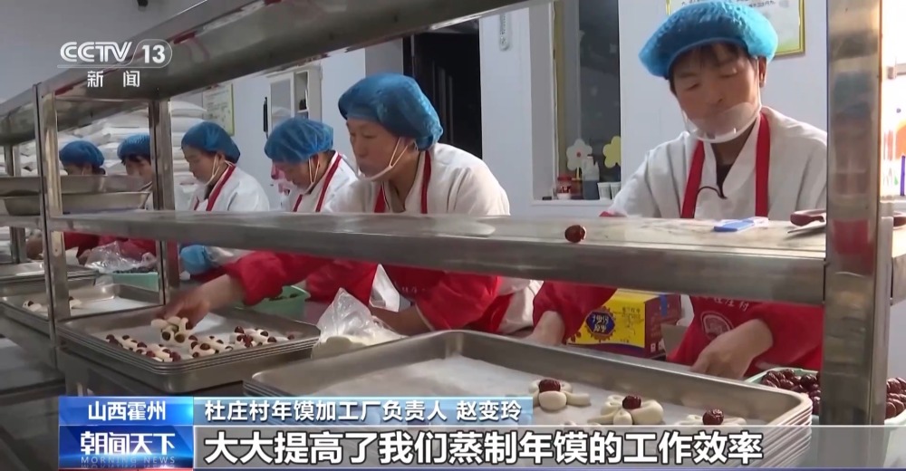 霍州市杜莊村年饃加工廠負責(zé)人 趙變玲:以前一天只能蒸制20袋面,現(xiàn)在可以提高到50袋,大大提高了我們蒸制年饃的工作效率,村民收入也有了成倍提高。