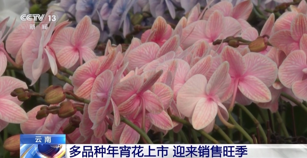 在云南,不同類型的年宵花也開始大量上市。在玉溪江川區(qū)九溪鎮(zhèn)的花卉大棚里,整齊擺放的大花蕙蘭競相開放。大花蕙蘭可單獨擺放,也可制作成胸花等小型花藝,特別是瓶插期長達45天,成為這段時間的暢銷花。