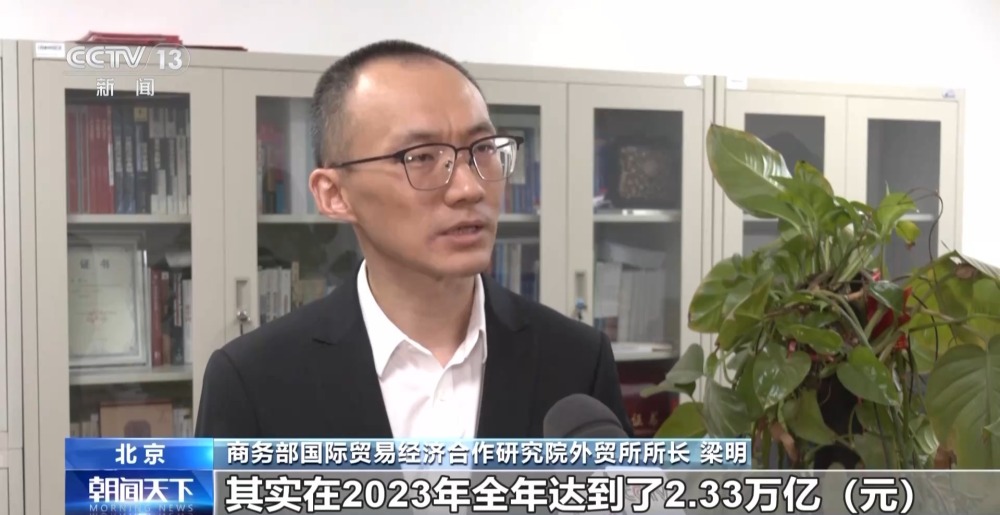 商務(wù)部國際貿(mào)易經(jīng)濟合作研究院外貿(mào)所所長 梁明:(我們的)跨境電商,在2023年全年達(dá)到了2.33萬億,同比增長15.6%,比去年增速是加快了5.8個百分點。“新三樣”我們也是首次突破1萬億,增速是接近30%。