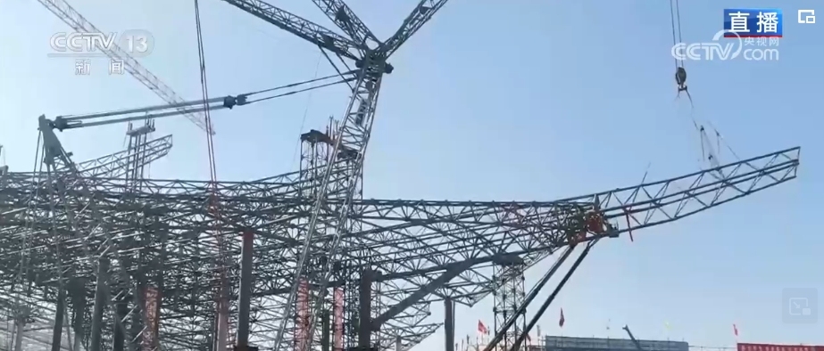 總臺記者 韓志濤:隨著最后一榀鋼梁順利吊裝到位,機(jī)場主航站樓鋼結(jié)構(gòu)合攏。航站樓的設(shè)計靈感來源于閩南傳統(tǒng)大厝,遠(yuǎn)看就像一只展翅飛翔的白鷺。白鷺身體部分就是主航站樓,像一個大屋蓋,總面積相當(dāng)于18個標(biāo)準(zhǔn)足球場,總用鋼量達(dá)到1.1萬噸,重量相當(dāng)于181節(jié)火車車廂。想把這些鋼梁安全架上去,誤差要控制在毫米級,可以說難度非常大,究竟是怎么完成的?建設(shè)者們想了一個巧妙的辦法,像拼搭積木一樣把屋蓋分為三個部分,先在樓面的原位進(jìn)行拼接,然后是分區(qū)域用液壓設(shè)備同步提升,最后在空中轉(zhuǎn)體調(diào)整角度。施工人員介紹,作業(yè)中最大單個提升區(qū)面積達(dá)3萬多平方米,提升重量有2600多噸,由數(shù)萬個構(gòu)件拼接而成。完成后同步啟動60多個液壓提升點(diǎn)向上整體提升1米,懸空后通過空中旋轉(zhuǎn)7度,調(diào)節(jié)到設(shè)計姿態(tài),最后提升到31米后精準(zhǔn)安裝。