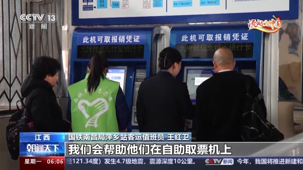 國鐵南昌局萍鄉(xiāng)站客運值班員 王紅衛(wèi):最近,我們也遇到很多老年旅客,我們會幫助他們在自助取票機上打印一張行程信息提示單,行程信息提示單在所乘車次下方會顯示詳細(xì)的檢票口和座位號,方便旅客乘車。