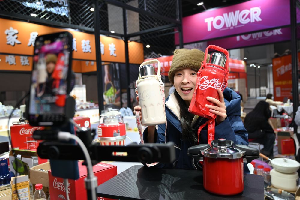 2023年12月21日,浙江省永康市一家保溫杯企業(yè)電商部門的工作人員通過(guò)直播推介保溫杯產(chǎn)品。新華社記者 韓傳號(hào) 攝