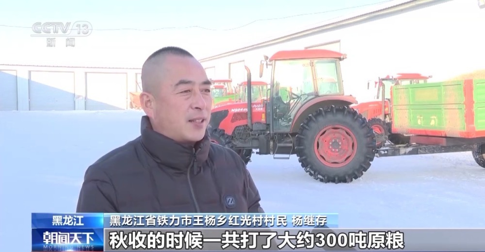 黑龍江省鐵力市王楊鄉(xiāng)紅光村村民 楊繼存:秋收的時(shí)候一共打了大約300噸原糧,這兩天價(jià)格好,趕緊到合作社把糧食賣了,賣個(gè)好價(jià)過個(gè)好年。