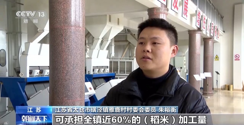 江蘇省太倉市璜涇鎮(zhèn)雅鹿村村委委員 朱裕衡:這個(gè)加工廠是由我們和隔壁的楊漕村、孟河村三個(gè)村一起投資建設(shè)的,可承擔(dān)全鎮(zhèn)近60%的(稻米)加工量,其他村都可以到這邊來加工,服務(wù)都是一樣的。
