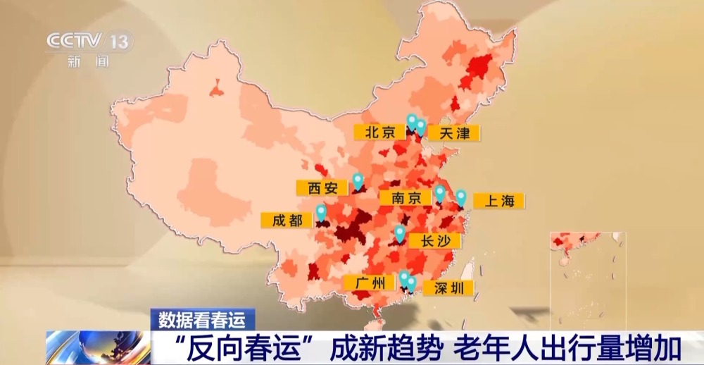 數(shù)據(jù)顯示,今年“反向春運”趨勢明顯,更多的老年人選擇前往子女的工作地團聚,他們的來源地主要集中在四川、河北、湖北、湖南等省份,而主要目的地則是北京、西安、天津、成都、廣州、上海、南京、深圳、長沙等一、二線中心城市。